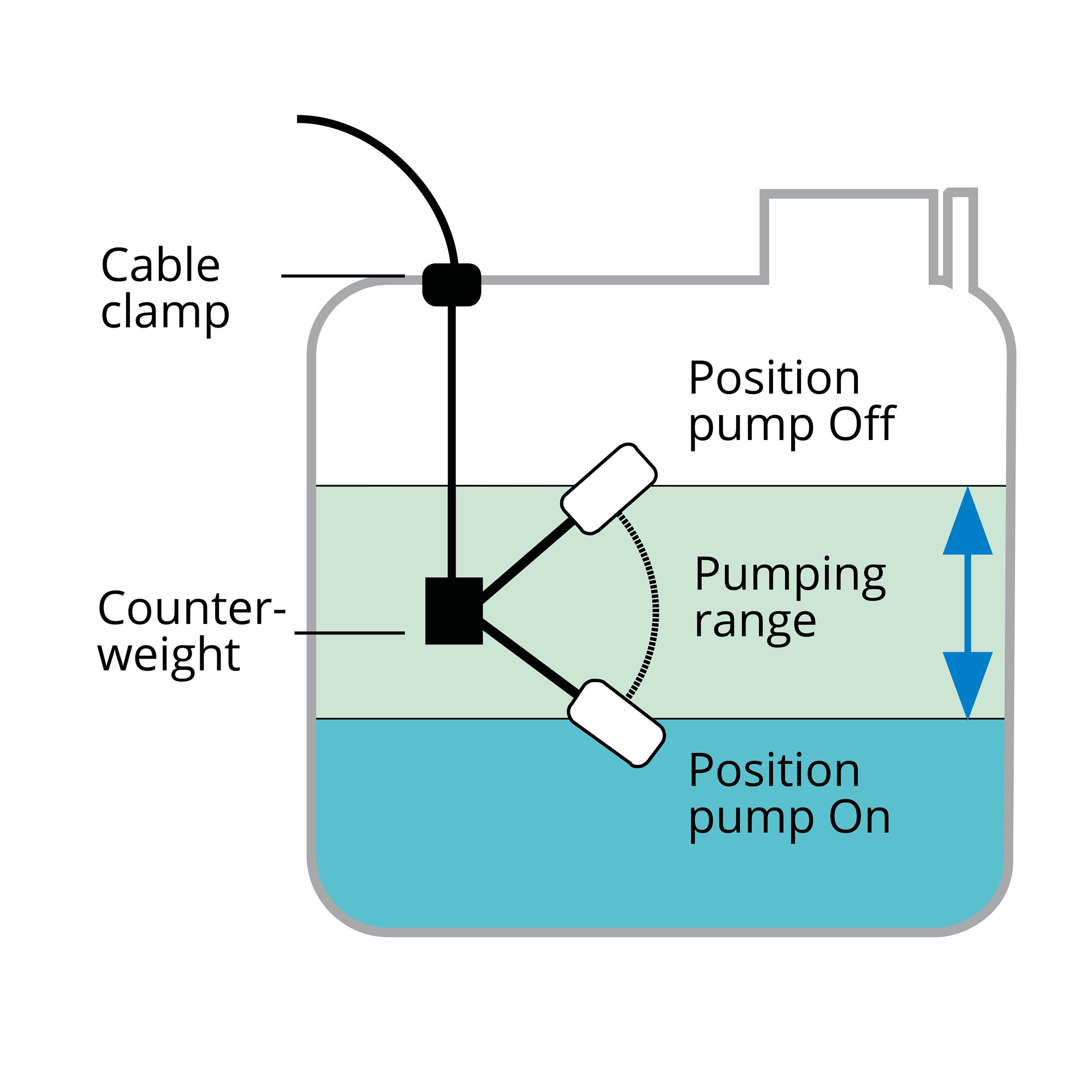 - The closer the counterweight is to the float, the smaller the pumping range.